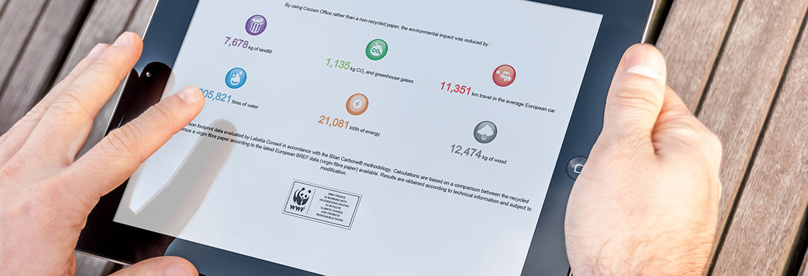 Our environmental calculator helps you to measure precisely the difference using Cocoon recycled paper makes in terms of: